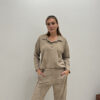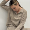 Buzo con cuello polo y cartera con broches de snaps en el frente. Tiene manga larga recta y calce tipo oversize, con tajos en costados.
